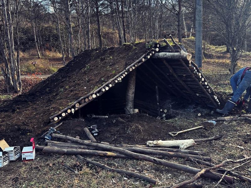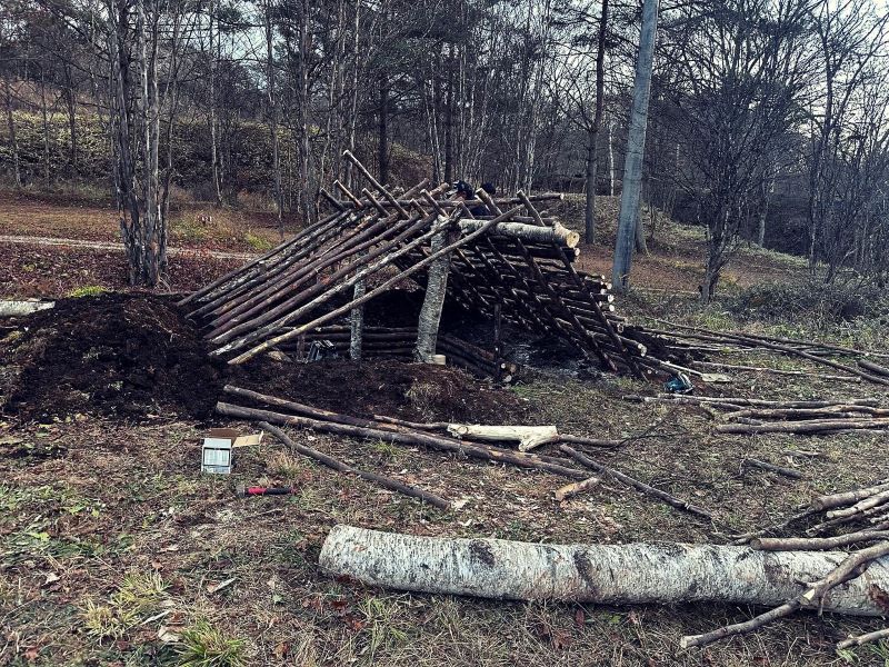 ブッシュクラフト体験ができる竪穴式住居を作りました。