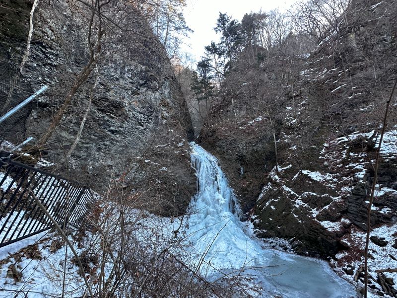 一年前の大仙の滝は滝自体が凍っている状態で爆氷が見れたのですが、今年は例年より暖かいためか、いまだに凍っている様子はありませんでした。