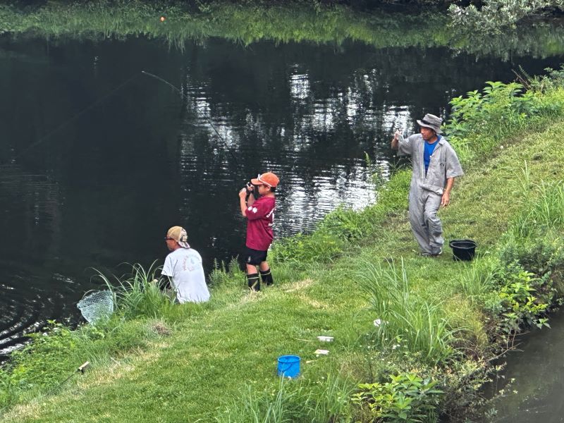 ・お魚も素手で触らないように網を使ってもらいます(ニジマスは人間の手の温度で火傷をしてしまいます。)